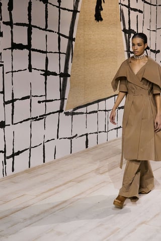 Chanel y su directora creativa, Virginie Viard, nos presenta a una mujer romántica, delicada, delicadeza expuesta en la inspiración venida de Oriente, de las bailarinas de ballet, donde esta presente el tul con superposiciones en tonos pasteles, rosa palo, verde menta, amarillo pálido, lila claro, gris perla, y el negro que no puede faltar.