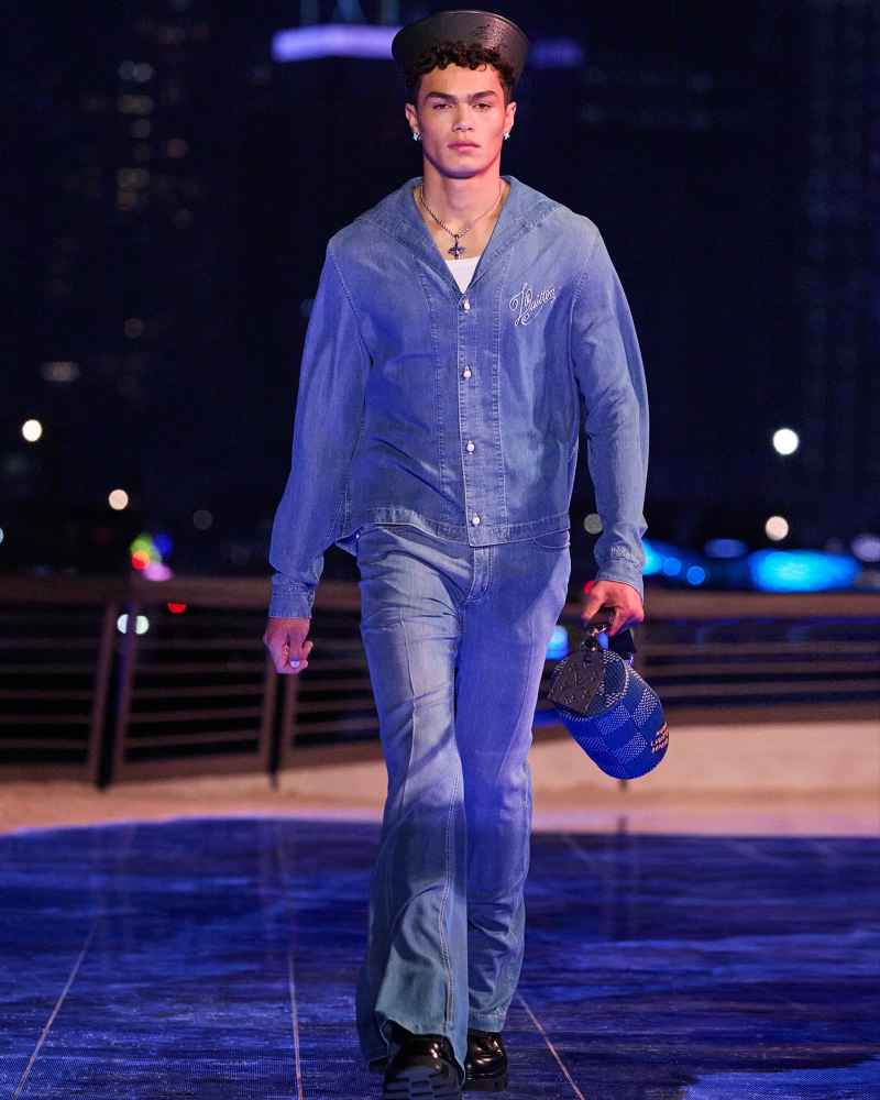 Louis Vuitton, presenta en París, su colección inspirada en el oeste americano, desde sombreros y botas cowboy con su tacón cubano, pantalones vaqueros con zahones, bordados con cactus a juego con sus chaquetas, abrigos con flecos, apenas hace uso de las corbatas y en su lugar recurre al lazo.